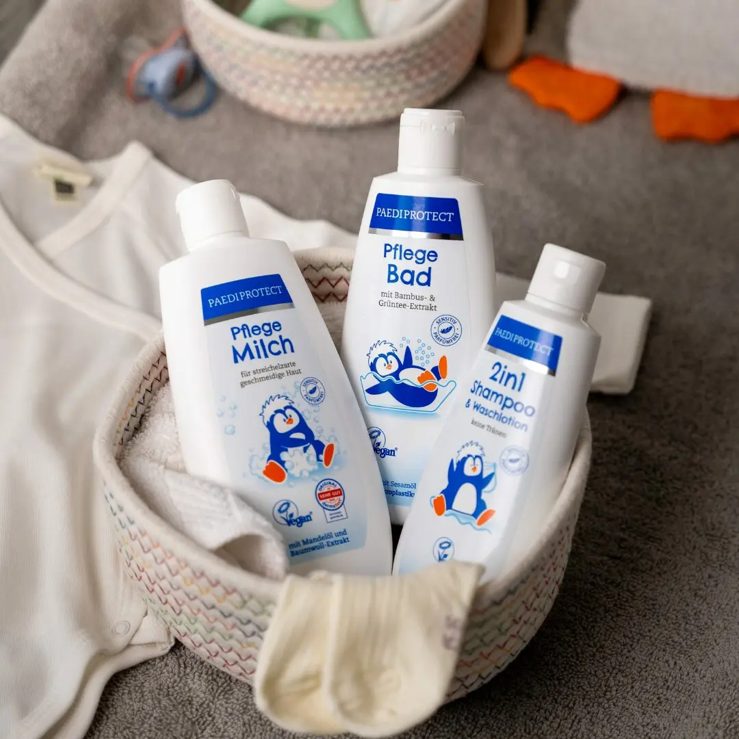 • Die PAEDIPROTECT Pflegemilch bietet die abschließende Pflege nach dem Baden. Sie versorgt die Haut mit wertvoller Feuchtigkeit und bewahrt sie vor dem Austrocknen.