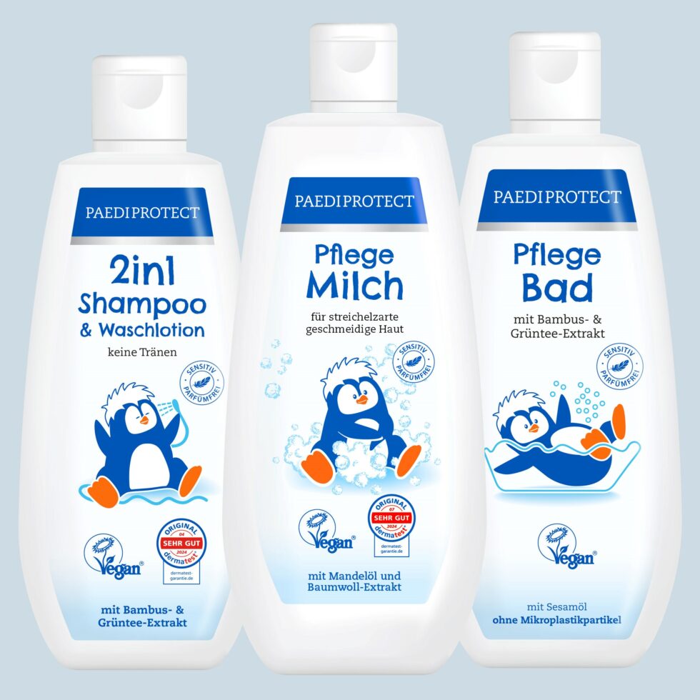 • Die PAEDIPROTECT 2in1 Shampoo & Waschlotion reinigt das Haar und den Körper gründlich, ohne die empfindliche Haut oder die Augen zu reizen.