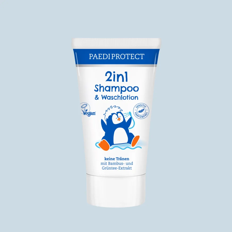 Das 2in1 Shampoo & Waschlotion schäumt zart auf und reinigt sanft Haut & Haar – ohne Tränen.