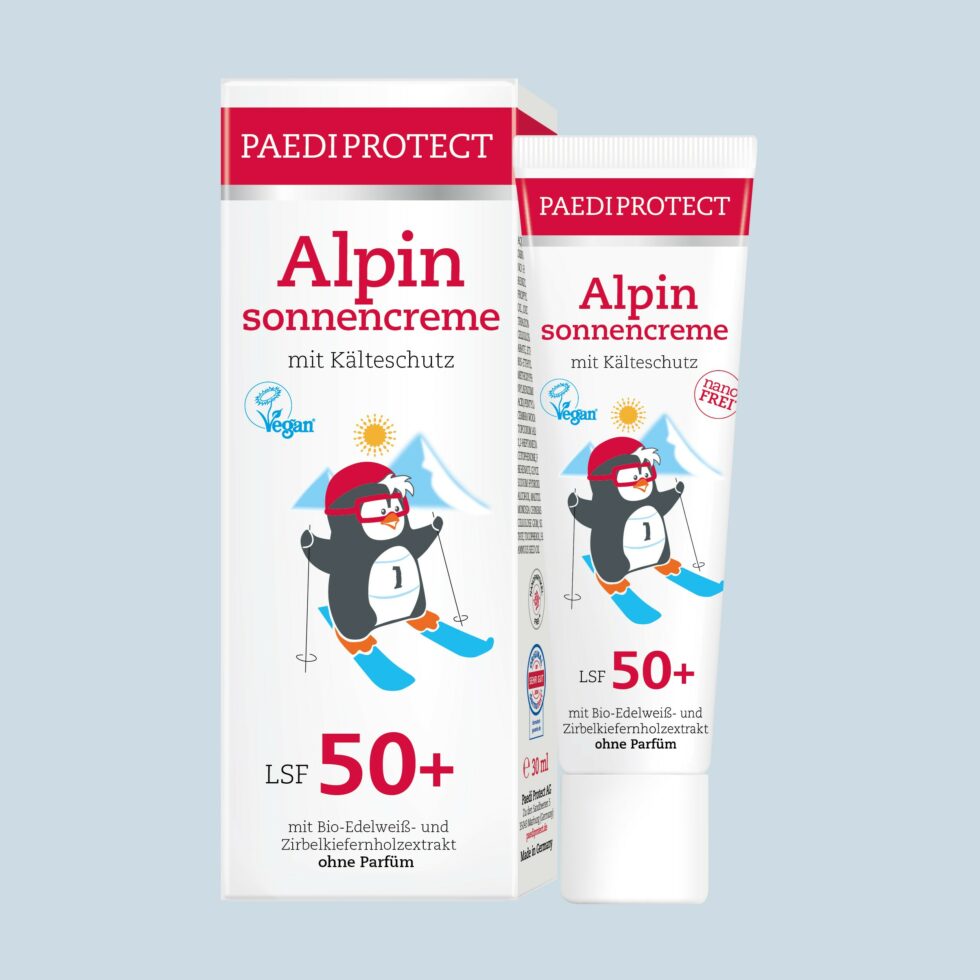 PAEDIPROTECT Alpinsonnencreme ist der ideale Begleiter bei wintersportlichen Aktivitäten. Der kombinierte Schutz vor Sonne und Kälte ist für sensible und empfindliche Haut in alpinen Gebirgslagen entwickelt worden. Bio-Edelweiß- & Zirbelkiefernholzextrakt und Jojobaöl versorgen die Haut mit Vitaminen, pflegen und schützen. Die Hautverträglichkeit ist auch bei hochsensibler Haut dermatologisch bestätigt. Die PAEDIPROTECT Alpinsonnencreme ist daher für die ganze Familie geeignet, auch für empfindliche (Baby-)Haut.