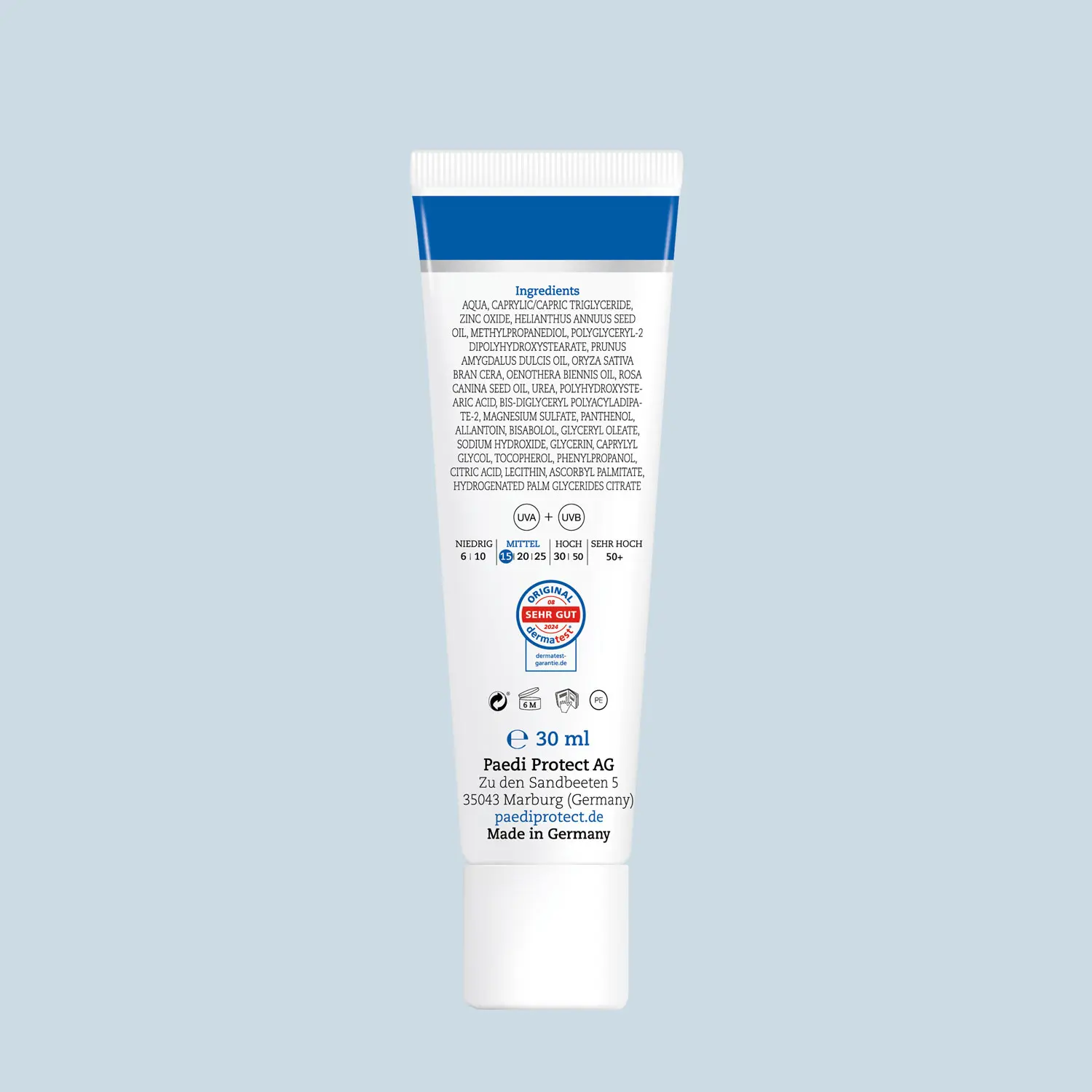 PAEDIPROTECT Wind & Wettercreme pflegt und schützt empfindliche Haut bei Kälte, Wind und Nässe. Die Kombination aus zertifiziertem Kälteschutz und mineralischem UV-Schutz mit LSF 15 macht sie zum idealen Begleiter in der kalten Jahreszeit. Die bewährte Kombination aus Hagebuttenkern-, Nachtkerzen- und Mandelöl nährt intensiv und beruhigt gereizte Hautstellen. Dank sanfter, reizarmer Inhaltsstoffe ist die Wind & Wettercreme für die ganze Familie geeignet, auch für empfindliche und zu Neurodermitis neigende (Baby-)Haut.