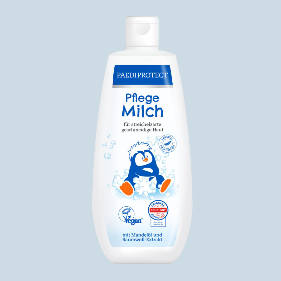 Die PAEDIPROTECT Pflegemilch versorgt empfindliche Haut mit intensiver Feuchtigkeit und schützt sie vor dem Austrocknen.