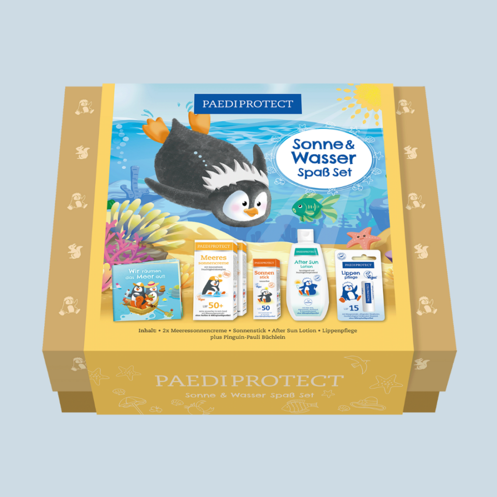 Sonne und Wasser Spaß Set: Speziell entwickelt für die zarte Haut der Kleinen, sorgt es für umfassenden Schutz und Pflege an sonnigen Tage am Wasser.