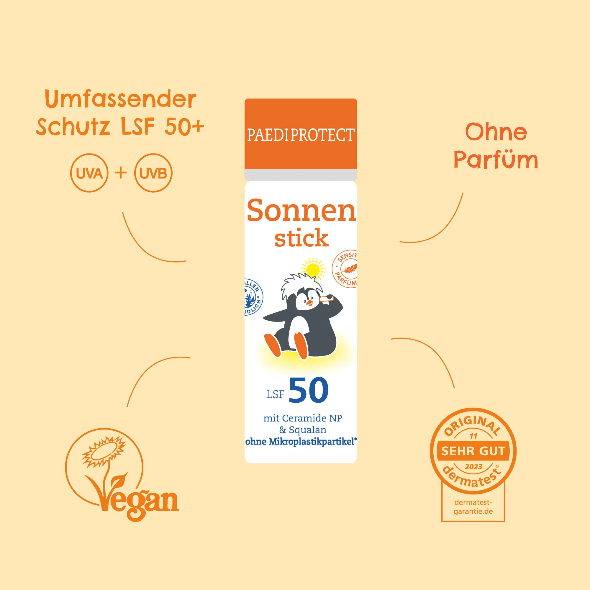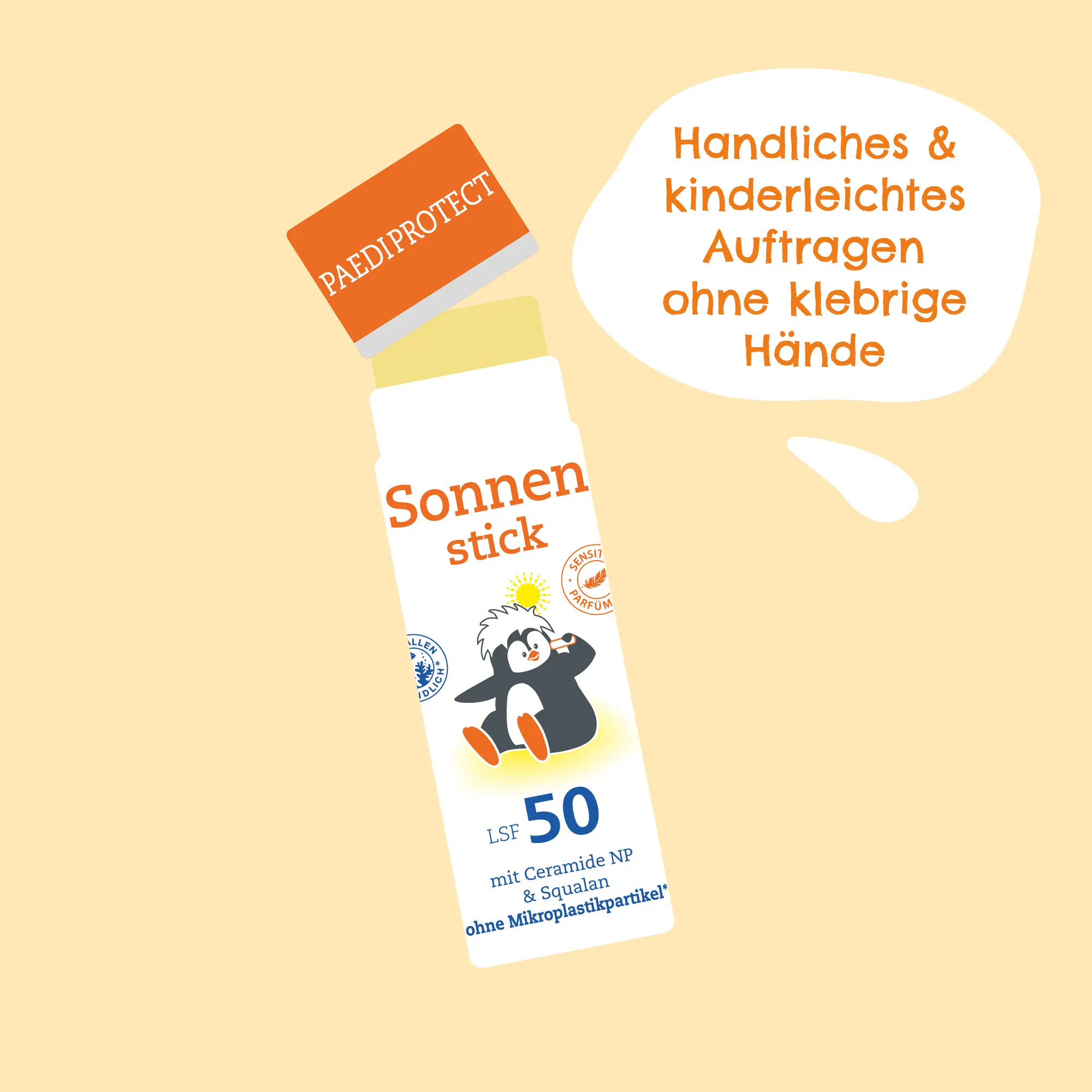 Wasserfester PAEDIPROTECT Sonnenstick LSF 50: Kompakt, vegan und pflegend – ideal für zwischendurch!